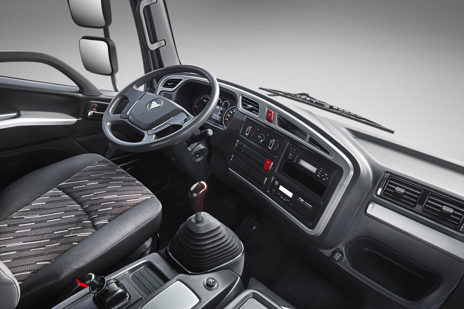 • Кабина автомобиля, сделанная из высокопрочной стали, способна выдерживать нагрузки до 7,5 тонн